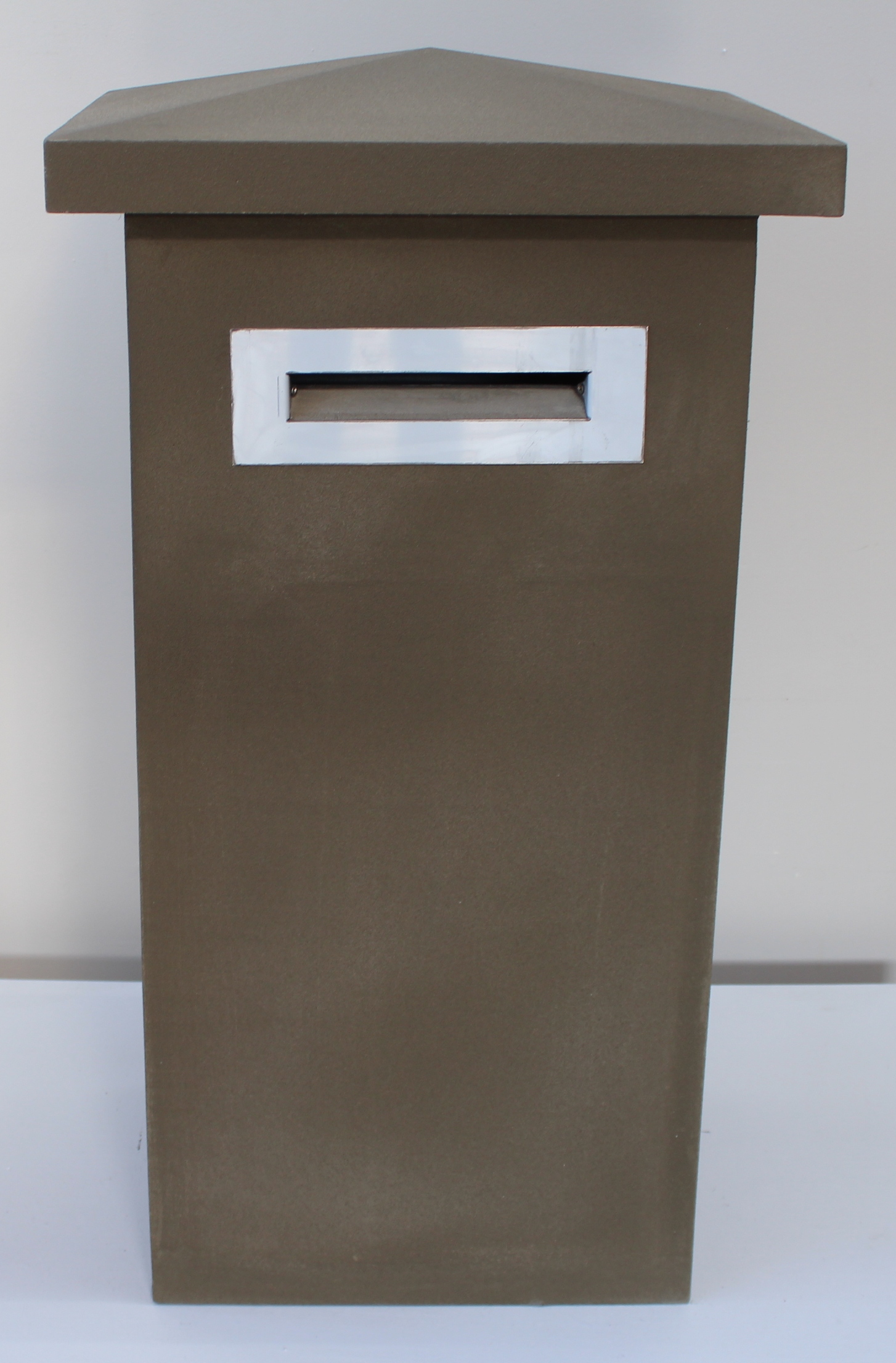 100% NZ made letterbox featuring an option of either a contemporary sloped top or the more traditional shallow pyramid top (see photos).