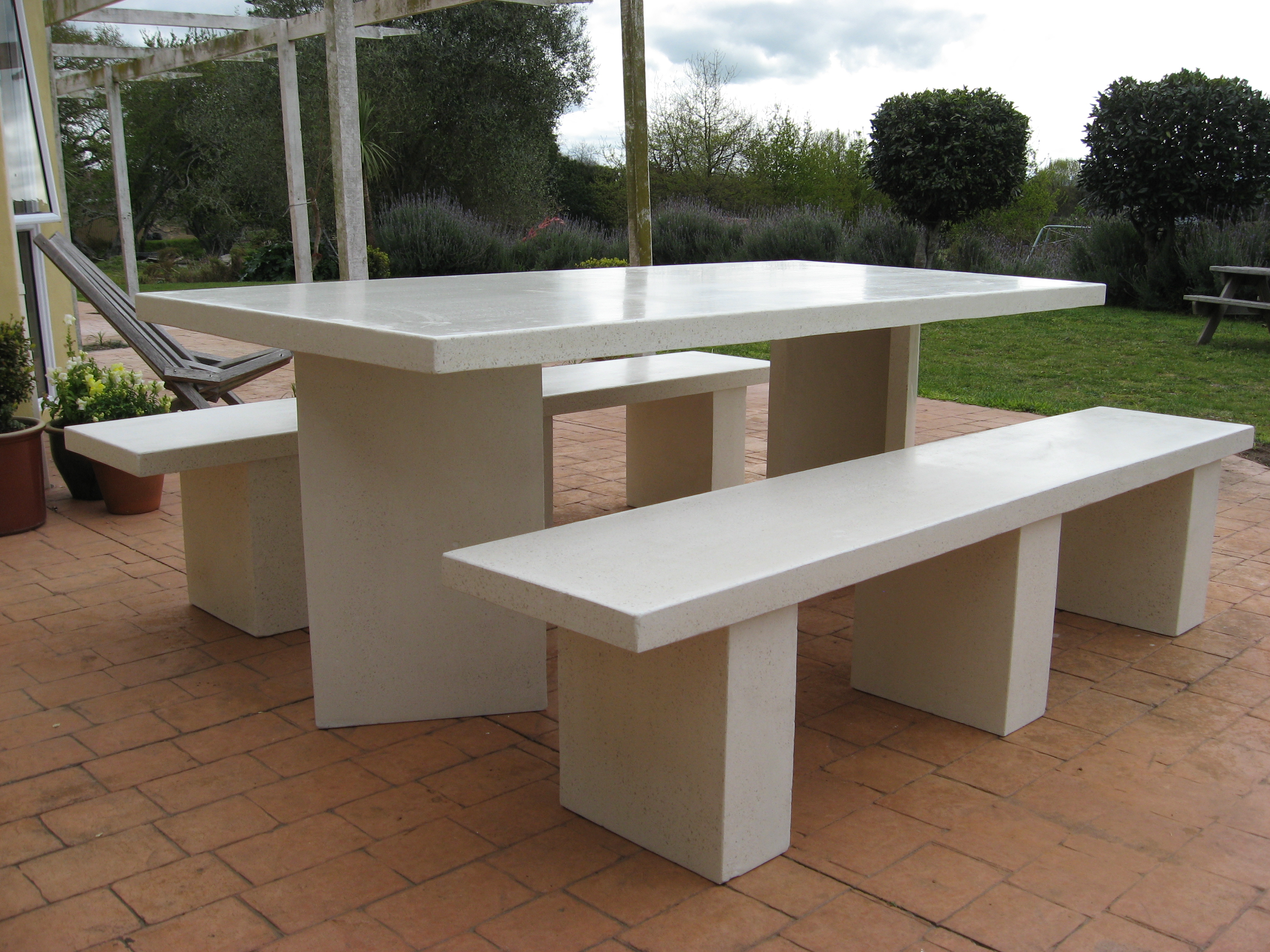 Solid concrete table available in a variety of sizes and colours (note bench seats not included in pricing below - sold separately). Photo shows optional V-Legs. Concrete Colours: White Sepia Natural Grey Charcoal Aged Stone Pricing: Size (mm) length x width x height x thickness Total Weight (kg - approx) Table price (top and one pedestal base) 45 degree bevel edge (table top) Sealing of Table Top (matt or gloss) 1500 x 1000 x 750 x 50 210 $2,060 add $360 add $150 1500 x 1500 x 750 x 50 285 $2,170 add $360 add $220 2000 x 1000 x 750 x 50 290 $2,365 add $360 add $190 2200 x 1000 x 750 x 50 310 $2,460 add $360 add $210 2400 x 1000 x 750 x 50 330 $2,765 add $360 add $230 3000 x 1000 x 750 x 50 390 $3,550 add $430 add $290 Optional V-Leg (for table top) 90kg $900 extra per set of two (suitable for 2000 or longer table tops) Exposed (polished) - add $500 per square metre